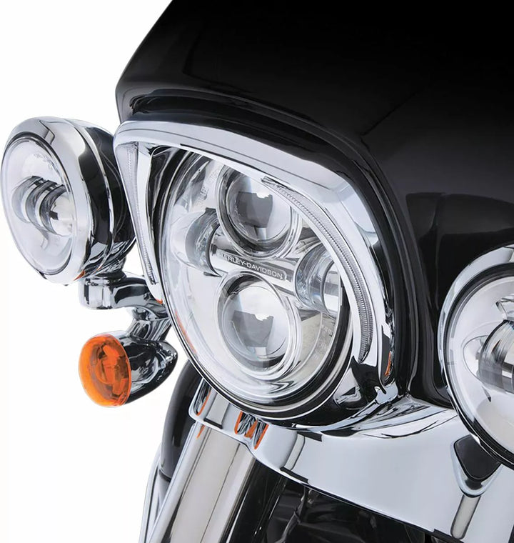 Simple and Stylish Way to put Additional Lighting on the Front of the Motorcycle, Perfectly Sculpted to Fill The Space Around The Headlight and Streamline The Look of the Fairing, Features Fang-Shaped Led White Running Lights to Set The Rest, Easis Includes Everything Needed, Easily Removed to Service The Headlight, Black Bezel Is Ready to Paint For A Custom Color Match, Plug-and-Play Into the Factory Wire Harness