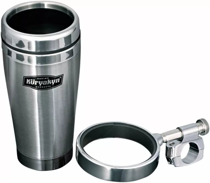 Clamps to the Handlebar or The Clutch/Brake Perch and Holds An Average Site Cup, Can, Bottle or Mug, Quick-Detach Mount Leaves A Simple Clamp When Not In Use, CLAMP DEGENES BEVENT TO SWIVEL WHEN NEEDED, STAINLES