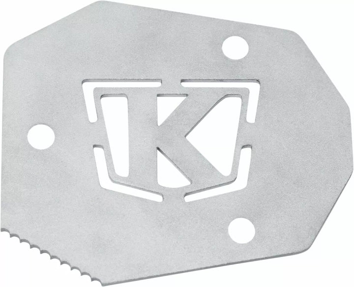 Provides Additional Surface Area to Keep Kickstand From Sinking Into Soft Surfaces, CNC Machined 6061-T6 Aluminum Top with Laser-Cut Stainless Steel Bottom Plate, Outer Edge Edge Can Be Utilizer to Breide on Flids on Fltr. The Bottom Plate Ads Traction to Help Deploy Kickstand in Wet or Muddy Conditions, Includes Three M5 Screws