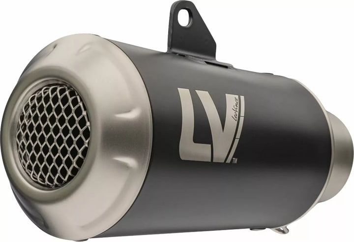AISI 304 stainless steel, shot blasted end cap, math finishing, rear stainless steel mesh, laser etched leovince logo, laser cut bracket, high temperature resistant "lv" sticker included in the box