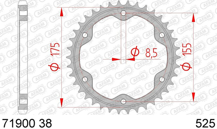 AFAM Steel Proad Pro's sú opracované z ocele C45 a potom sú ošetrené s vyššou tvrdosťou a dokonca aj odporom. Vďaka kvalitnému výrobnému procesu a presnosti rezania sa AFAM stal svetovým lídrom pre časti prenosu motocyklov. Oceľový zadný sprockkettop výroby a kvalita kontribútov pre prevodovku trvanlivosť reťaz_pitch: 525.0 Materiál: oceľ zadné_prolet_teeth_count: 38.0 zadné_proet_tepe: