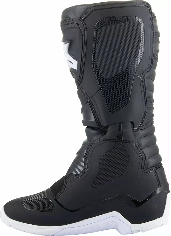 Horná konštrukcia Boot Horn Construction je inovatívny, ľahký materiál z mikrovlákna, ktorý je flexibilný a odolný proti oderu, ľahké mikrovlákno na prednom a zadnom vlnovom metrov Odolnosť proti nárazom, zadný panel TPU Gaiter Patch Appl Impact Restancy na zadnú plochu Flex, Injektovaný tanier TPU Shin je spojený s TPU Medial Guard, Hook-and-Loop Horná zakončenie s TR Flap, ktorý poskytuje širokú škálu konania a podpory TPU, TPU vyššia mediálna protralácia Biomechanický mediálny lopat Popruhy popruhy sa hladko zabalia od predného ohybového a stredného strážcu po bočnú stranu polymérových praciek Flexibili v batožinovom priestore s Ratchetov uzavretie, spona pamäť a rýchle uvoľnenie/blokovanie s dizajnom samoalitu, všetky sponky zavádzajú zavádzacie sponky na topánky, ktoré sú vložené do konania s jedným kusom, ktoré sú vložené do dvojdielneho konania, ktoré sú vložené do konania, ktoré sú vložené do konania, ktoré sú vložené do konania, ktoré sú vložené do konania, ktoré sú založené na komforte a šokom. Pohodlie, vymeniteľná Eva Footbed s textilnou hornou podšívkou, Alpinestars All-Terrain jediný dizajn s vysokými gumovými zlúčeninami; Podrážka je vymeniteľná