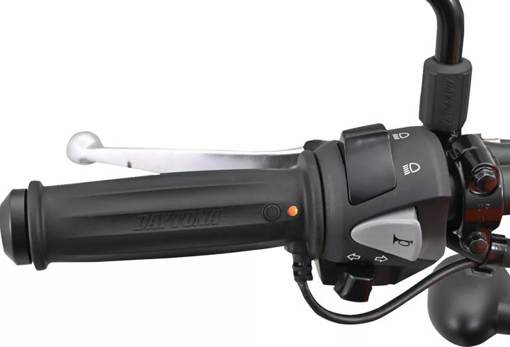 Vstavaný elektrický spínač, hodí sa na riadidlá 7/8 "(22,2 mm), 4-úrovňové ovládacie prvky, 5-farebné LED indikátory, funkcia rýchleho ohrievania pre okamžité teplo, dvojvrstvové gumové rukoväte pre plynulejšiu priľnavosť