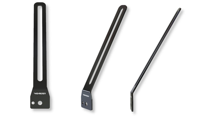 Držiak čiernej ocele s logom Highsider na priame montáž rôznych reflektorov na držiteľ poznávacej značky Akron-RS.