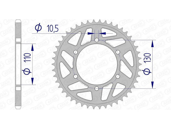 AFAM hliníkové korunné zariadenia sú vyrobené z zliatiny, ktorá je ľahká a tvrdá. Kvalita obrábania a presnosť rezania robia AFM celosvetovo štandardné osady pre časti prenosu motocyklov. Pretekárske hliníkové korunné zariadenie Ultra-Light s tvrdým anodizačným odporom prenosom voči voľnému a unaveným povrchom a kvalitnej konkurenčnej jazde na konkurenčnom jazdeckom reťazci: 520.0 Materiál: Hliník zadné nasadenie