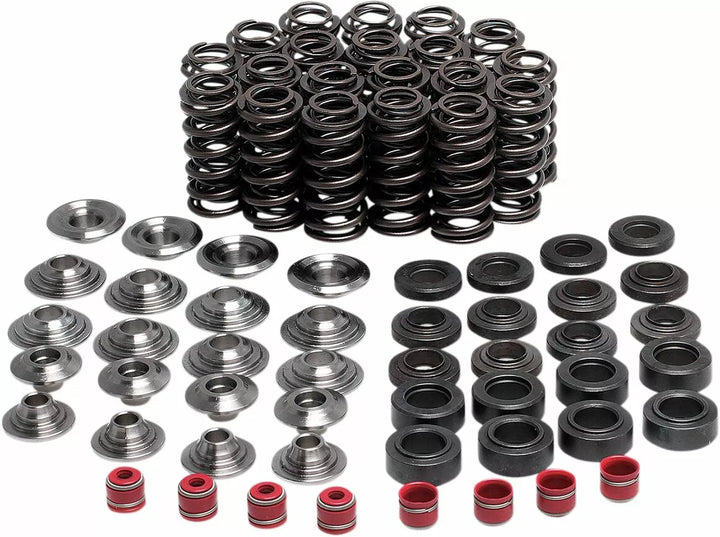 Súpravy, ktoré sú navrhnuté tak, aby prekonali a prežili továrenské ventilové pružiny, sú vybavené ľahkými, vysokovýkonnými ventilovými pružinami CRSI, H.T. Oceľové základné podložky a titánové pružinové držiaky, kompletná súprava, všetko, čo potrebujete pre kompletný swap na pružinu ventilového ventilu