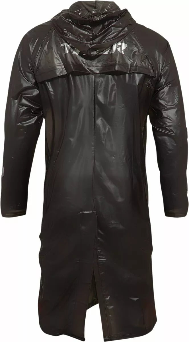 100% PVC Construction, Raglan Ruckves s panelmi zo sieťoviny predlaktia na vetranie, polotranslucentný materiál, predné klapkové vrecká, zadné výfukové prieduchy umožňujú únik horúceho vzduchu, zips a gombíkové zatváranie, refringová kapucňa