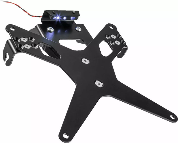 Držiak poznávacej značky je mimoriadne odolný a dôkaz o počasí, potiahnutý čiernym práškom. , Držiak poznávacej značky sa môže použiť na akýkoľvek druh poznávacej značky (šírka 175 mm). Nevyžaduje sa žiadna úprava kapotáže., Stepless nastavenie uhla raku. Doska., Špeciálne indikátorové ľahké držiaky (predávané osobitne) potrebné pre svetlá indikátora zásob., Kit obsahuje: 1 držiak ŠPZ s. Montážna súprava., LED ŠPZ LETKA „E schválené“ vrátane. Podpora., Zadné svetlo s podporou. Zrieknutie sa zodpovednosti: Dôležité: Na použitie tohto držiteľa poznávacej značky s OEM Turn Signals of Ducati Models (2015 - prítomný) je potrebný špeciálny držiteľ (adaptér so signálom Zieger a Duc. Číslo dielov Európy: 20301971. Číslo dodávateľa: 10005790).